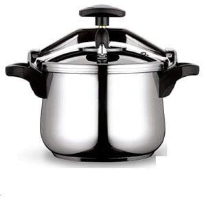 - Olla a presión de 5 litros en acero inoxidable, con fondo encapsulado y base de aluminio para una distribución uniforme del calor, con mecanismo de cierre Total Security System. Bloqueo de seguridad que no permite la apertura cuando hay presión.